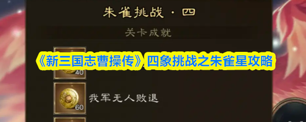 以上就是《新三国志曹操传》四象挑战之朱雀星的详细攻略,希望大家能顺利通关,享受游戏带来的乐趣!更多相关攻略,请持续关注51766的更新!