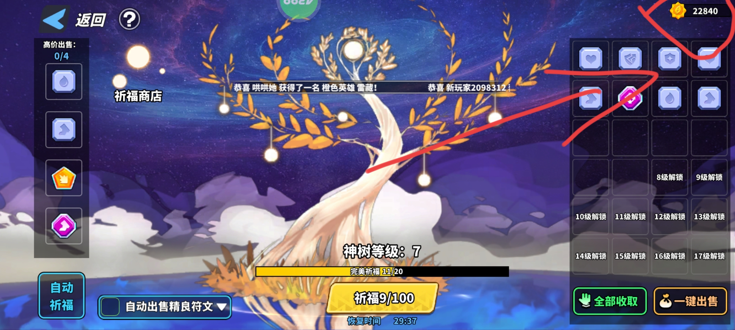 一、通过祈福商店,使用祈福币购买红色符文礼盒,前提是你的神树等级达到8级才能解锁,购买时需要消耗5000神树币。二、购买符文大礼包,这个礼包需要满足特定条件才会出现。触发条件为:
